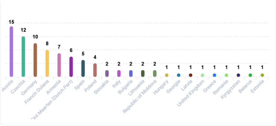 So, in just seconds, we were able to obtain a set of relevant information and save time in a profession driven by the need to do everything very quickly. We've selected only the false stories containing references to "chemtrails" conspiracy theories - and we've found that these narratives appear predominantly in Russia, but we detect them in almost every European country.